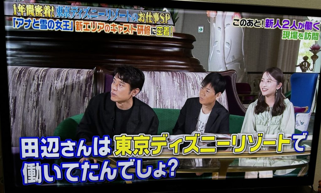 番組のトーク中にネプチューンの原田泰造さんが、「田辺さんは東京ディズニーリゾートで働いていたんでしょ?」と質問したところ、田辺さんは「2003年から2010年まで7年ほど(ディズニーキャストとして)働いていました。」と明かしました。