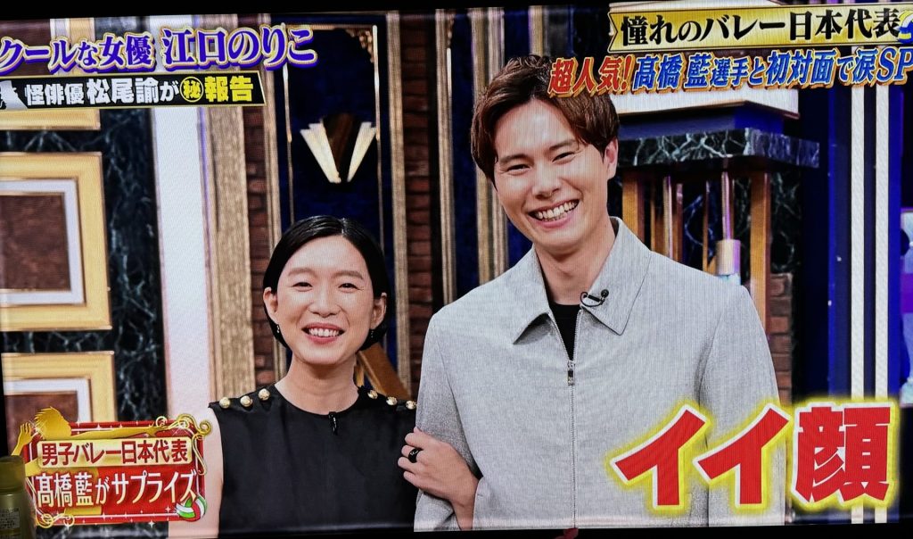 くりぃむしちゅーの上田さんから「選手のお気に入りは?」と言う質問に対し、江口のりこさんは「石川祐希さんもカッコよく、皆さんカッコよかったですが、高橋藍選手を見た時は、最初びっくりしました。めっちゃかっこいいと思って」と語っていました。